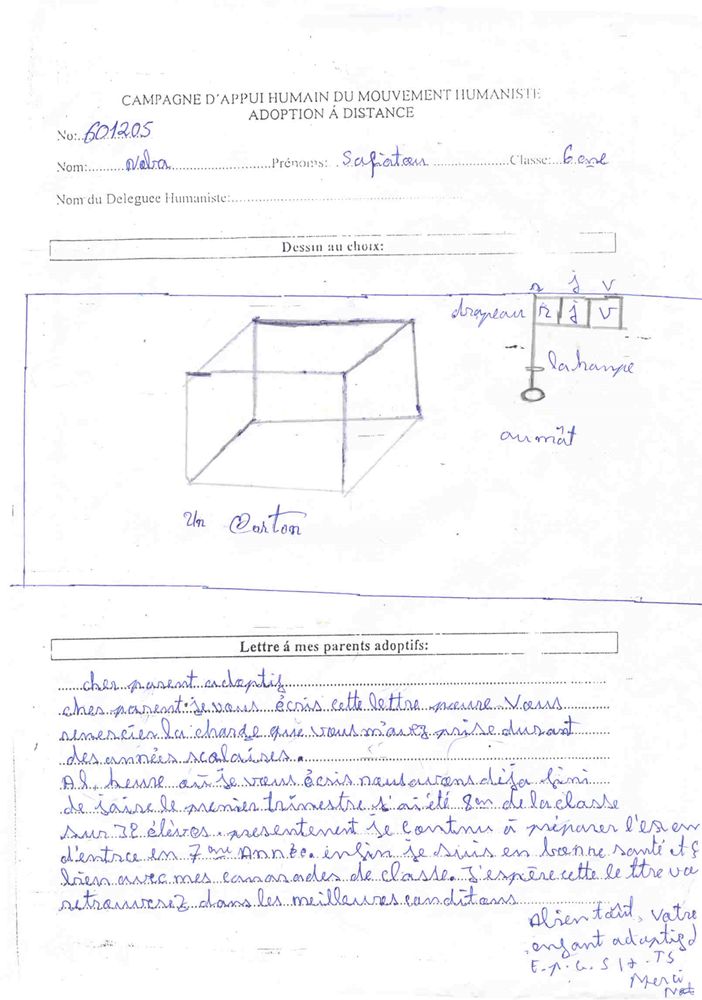 Fodé Laye díky svému prvnímu adoptivnímu rodiči začal chodit do školy. Naučil se číst, psát, počítat. Od roku 2016 se podpoře jeho školného věnuje nový "rodič", chlapec tedy může chodit dále do školy.