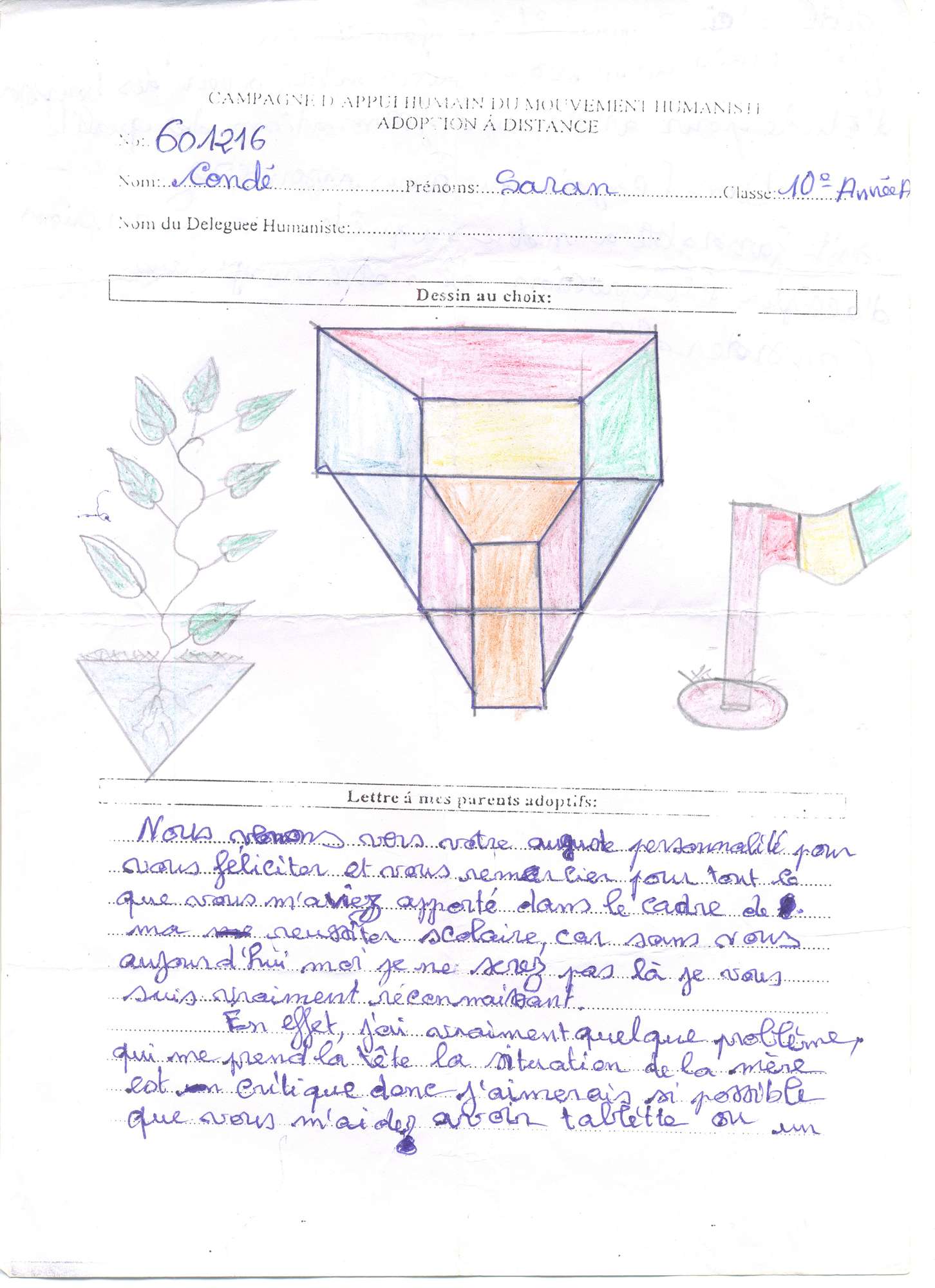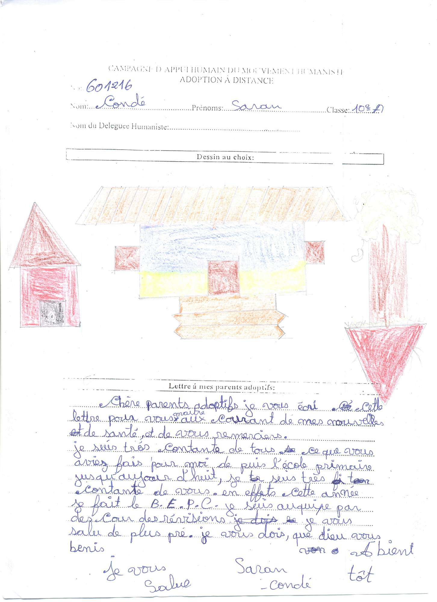 Saran Condé byla adoptována v roce 2008 a dnes navštěvuje 2. ročník střední školy ve škole G.S.P. Elhadj Karamba Diaby (Matam).