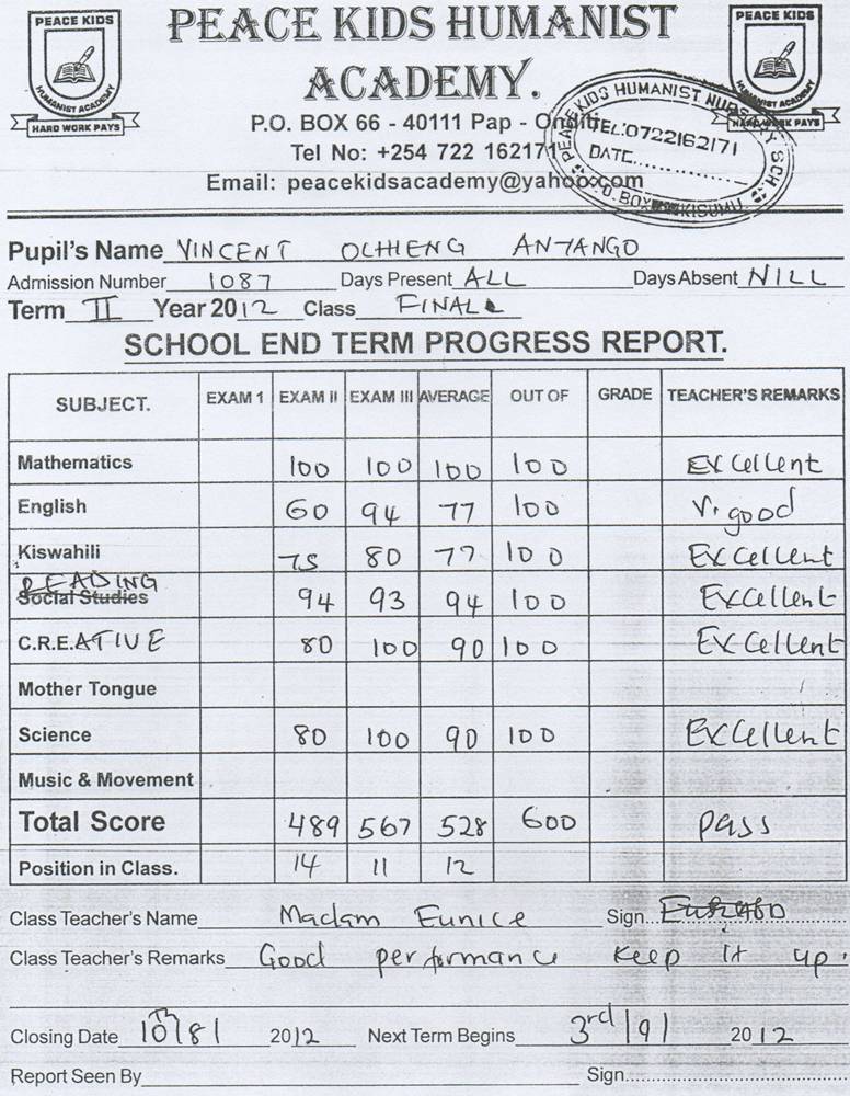 Adopce dětí z Keni přijde na 7200 Kč ročně, což odpovídá 600 Kč měsíčně. Školní rok v Keni je rozdělen na tři trimestry, mezi nimiž je vždy jeden měsíc prázdnin. První trimestr začíná v lednu, druhý v květnu a třetí v září.