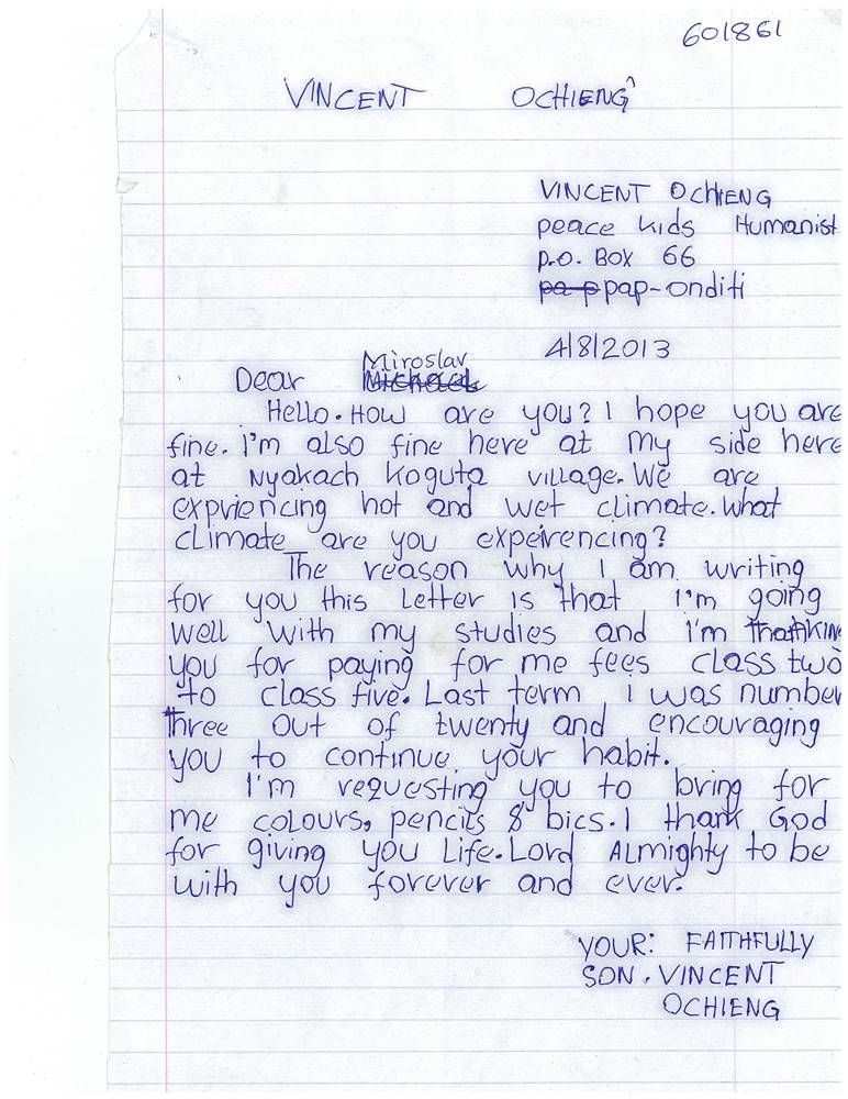 Popis situace: Chlapec pochází z chudé rodiny, jeho rodiče nedokáží ze svých příjmů zajistit školní docházku. Vincent má dva sourozence.