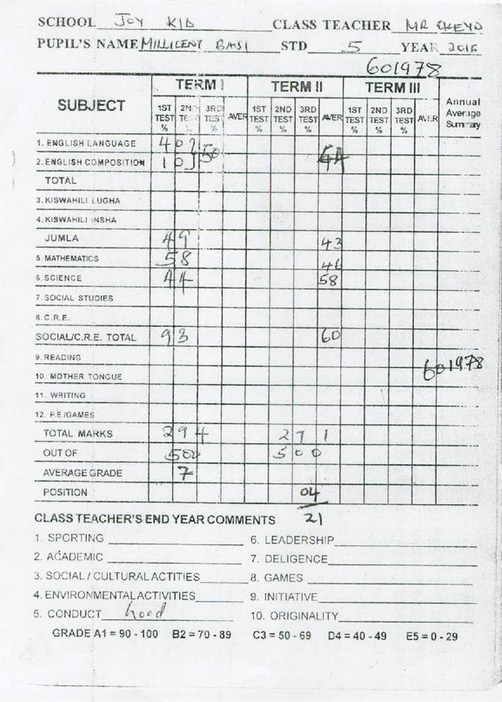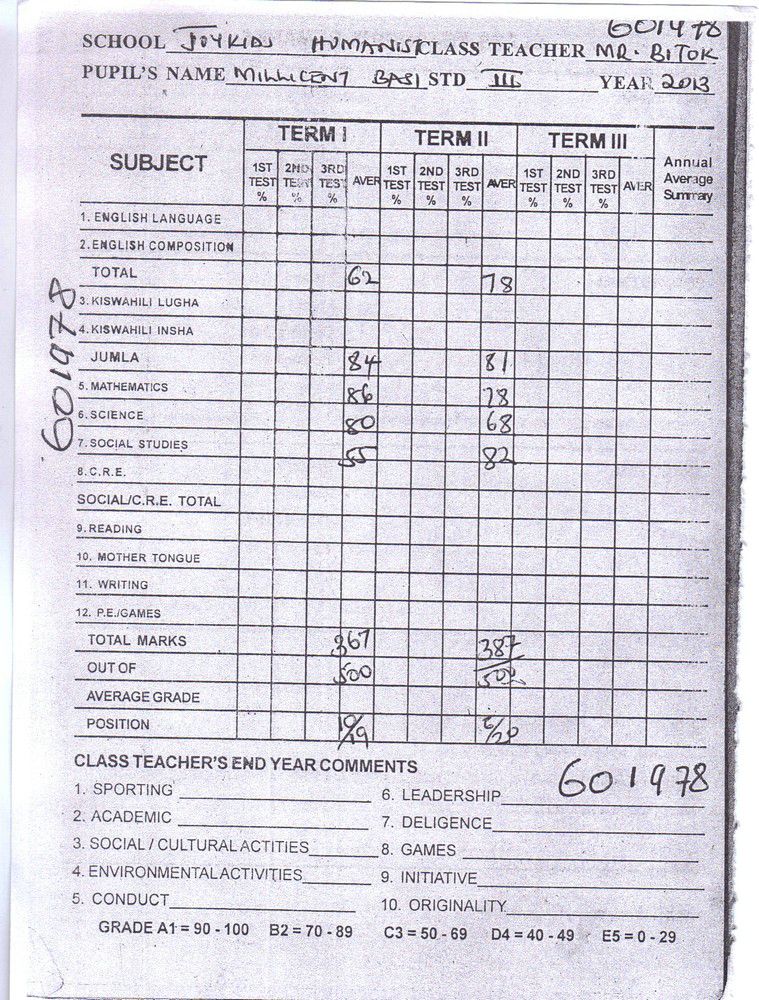 Millicent Bacy byla adoptována v roce 2009 a dnes navštěvuje 1. ročník střední školy ve škole Miwani Estate Primary School.
