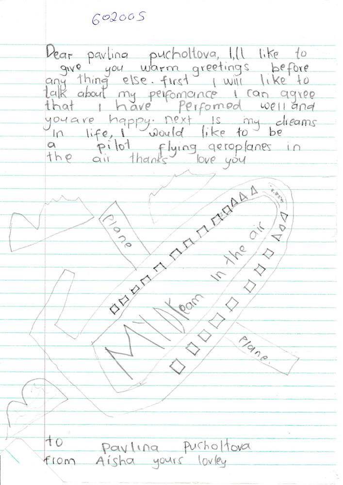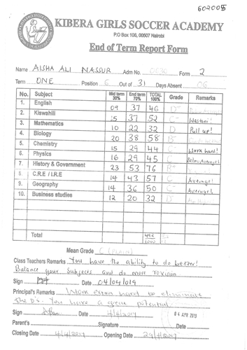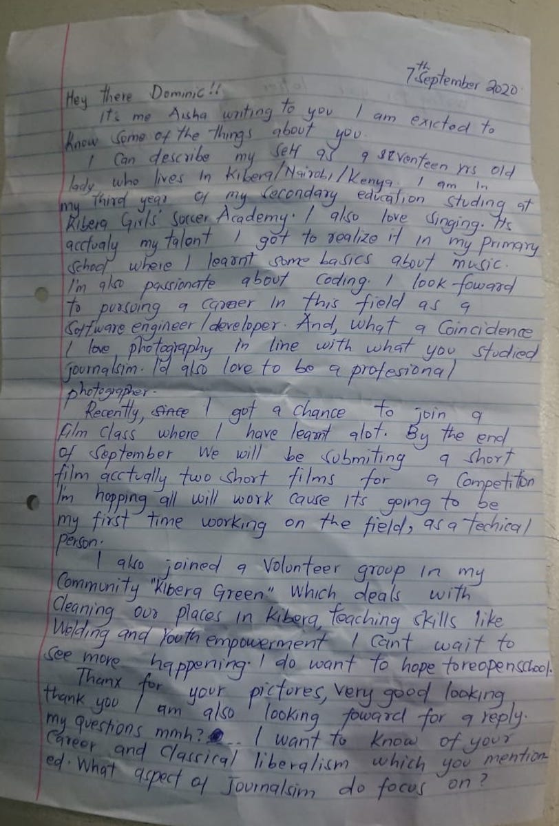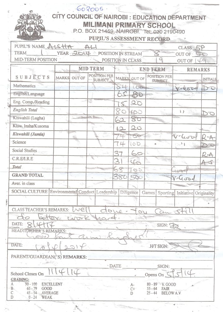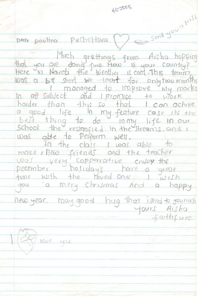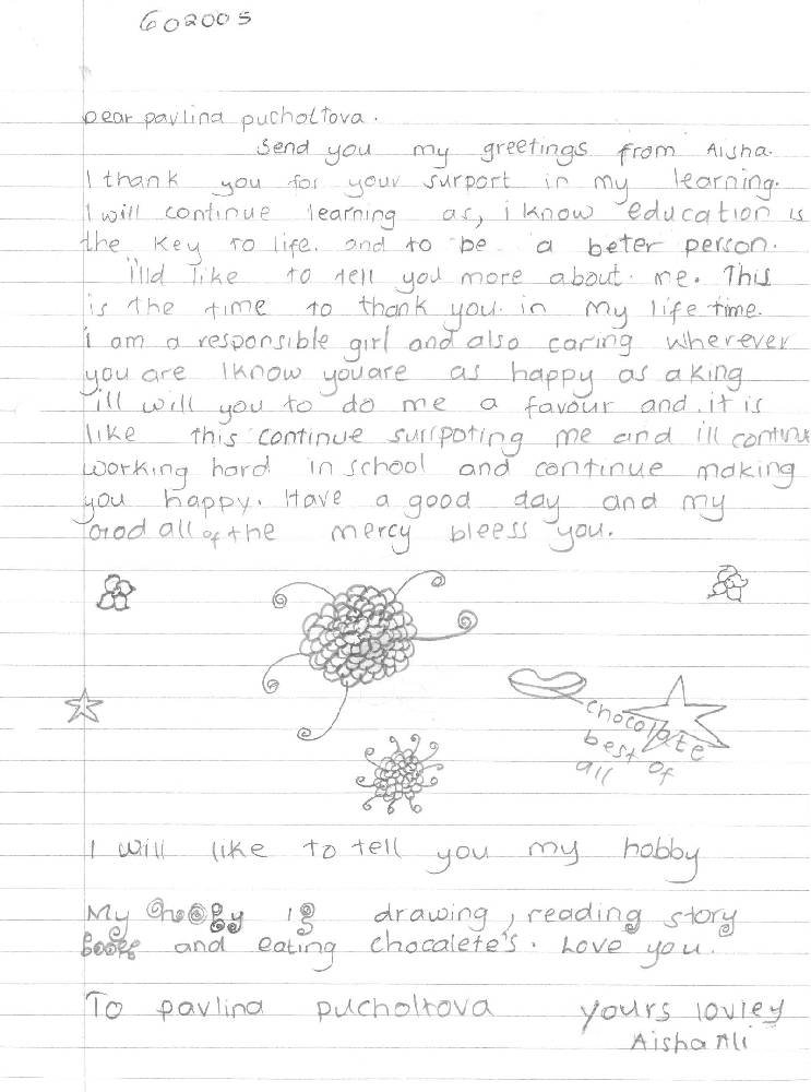 Ali Nassur Aisha byla adoptována v roce 2009 a dnes navštěvuje 3. třídu ve škole Kibera girls soccer academy.