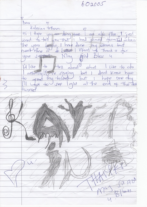 Aby mohlo adoptované dítko začít chodit do školy, musí být uhrazeny peníze za školné alespoň měsíc předem. Tím máme dostatek času převést peníze do Keni a vypsat šek na jméno školy a zaručit jeho doručení do školy - to vše před započetím trimestru. Konkrétně to tedy znamená, že vždy do konce března, července a listopadu musí být na našem účtu 2400 Kč na uhrazení školného na nově začínající trimestr. Adoptivní rodič může platit třikrát ročně nebo jednorázově na celý rok a záleží to čistě na jeho rozhodnutí a možnostech.