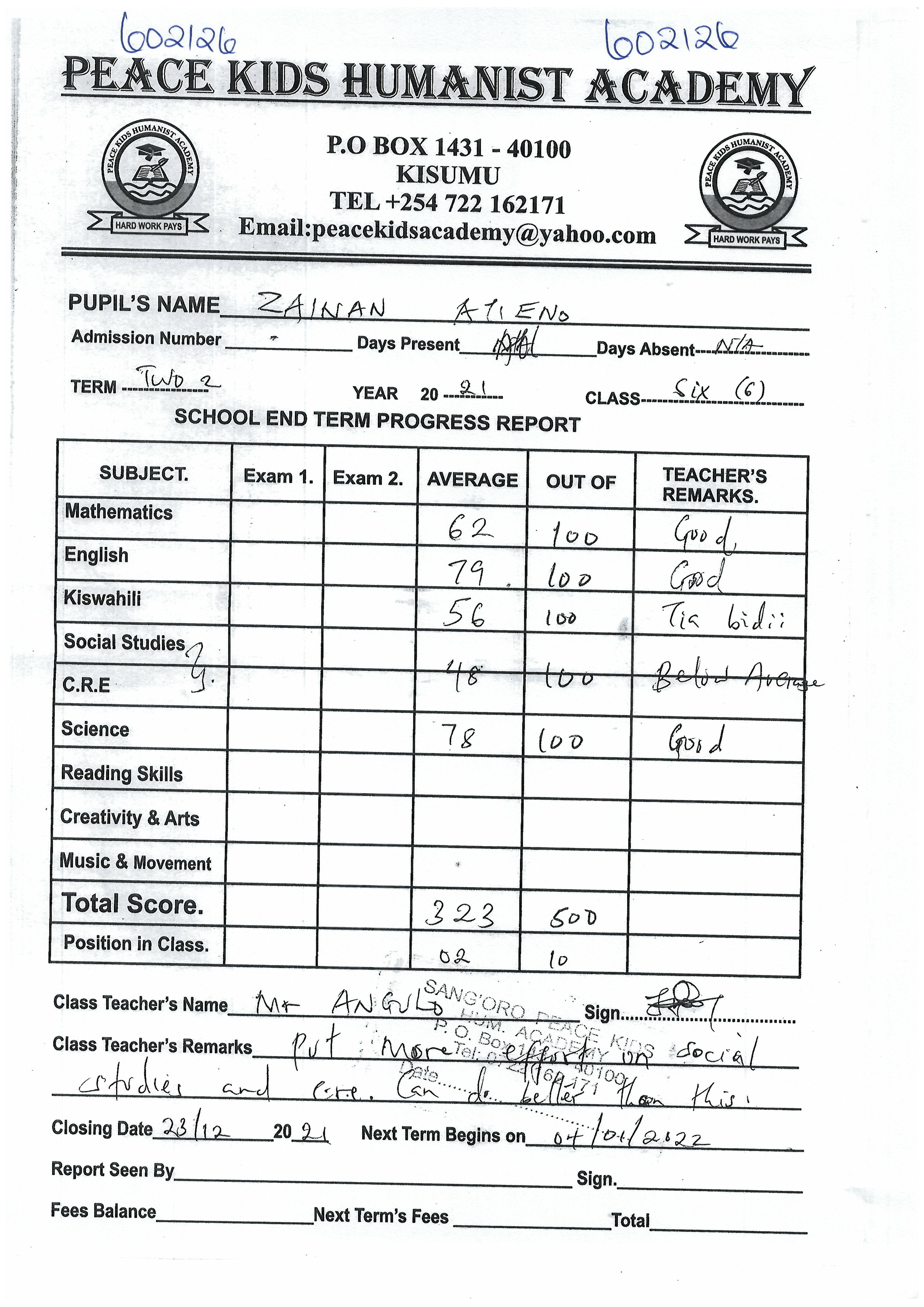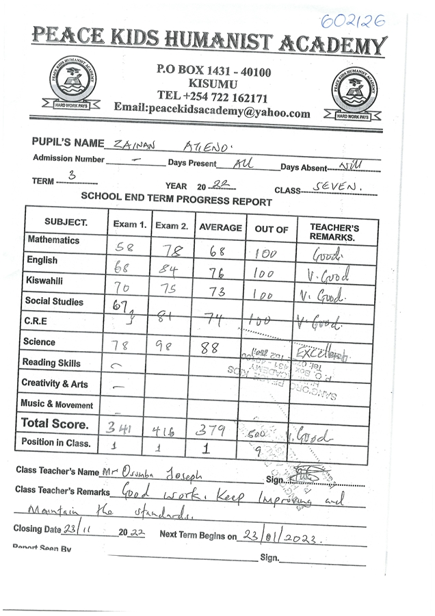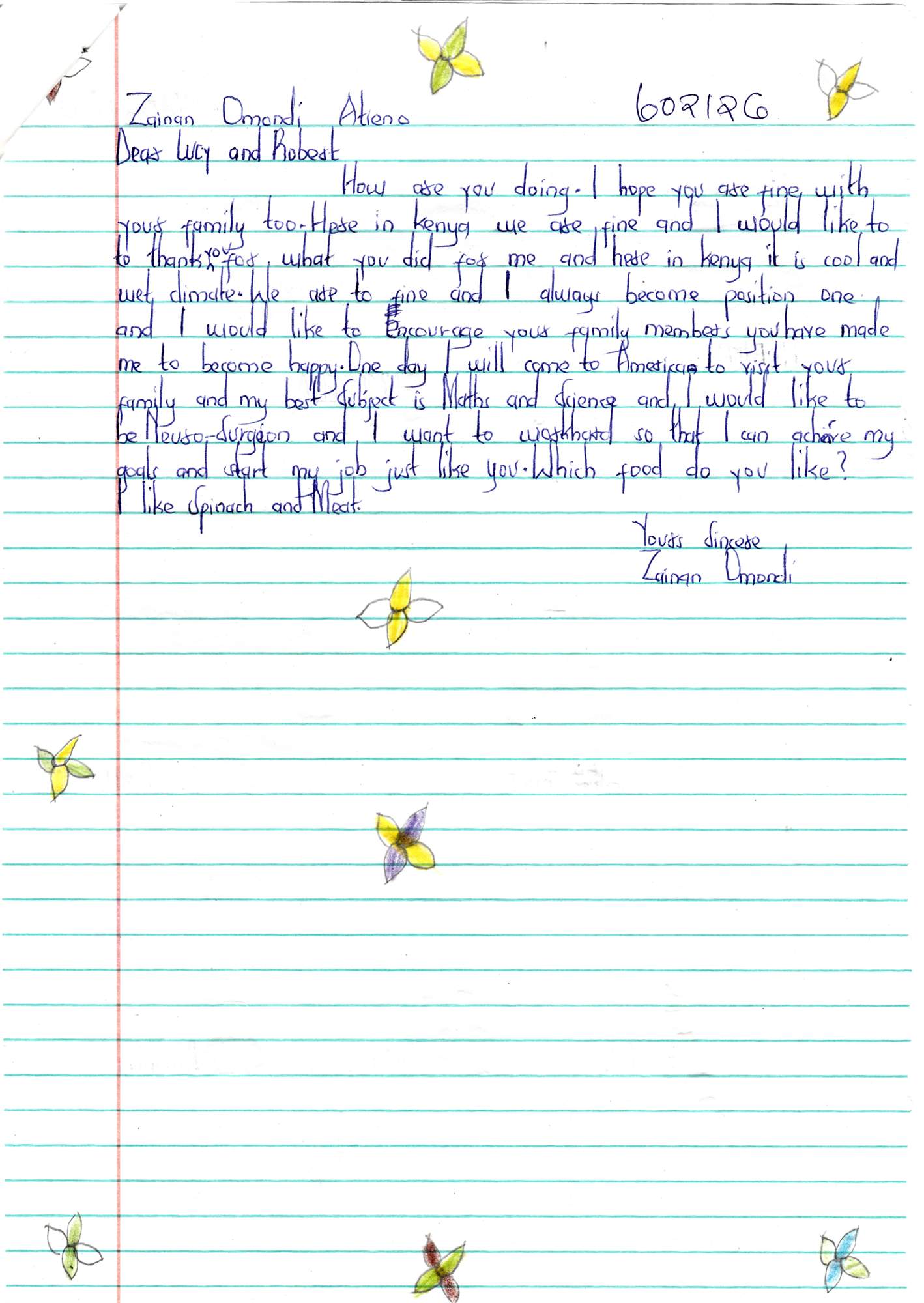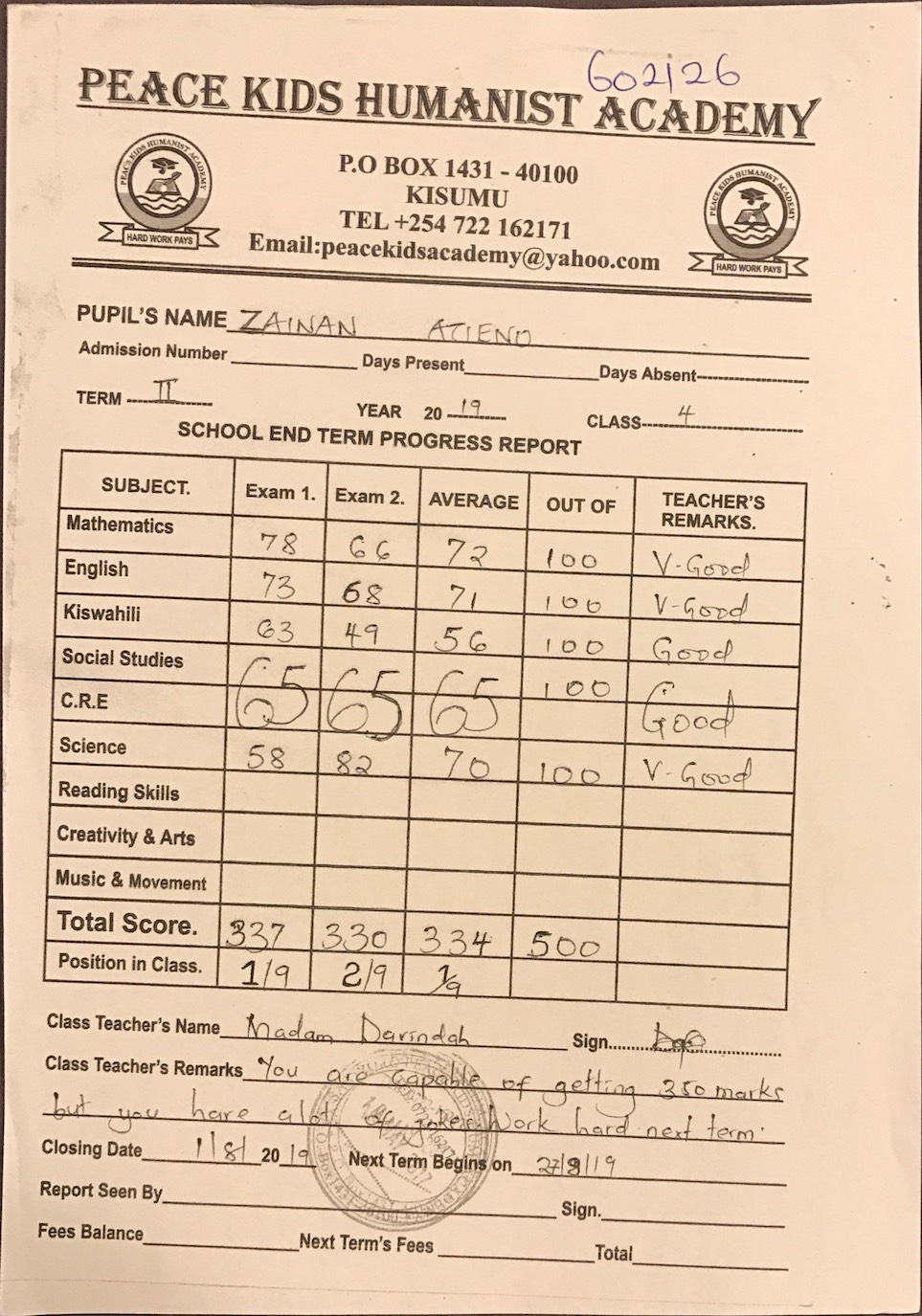Adopce dětí z Keni přijde na 7200 Kč ročně, což odpovídá 600 Kč měsíčně. Školní rok v Keni je rozdělen na tři trimestry, mezi nimiž je vždy jeden měsíc prázdnin. První trimestr začíná v lednu, druhý v květnu a třetí v září.