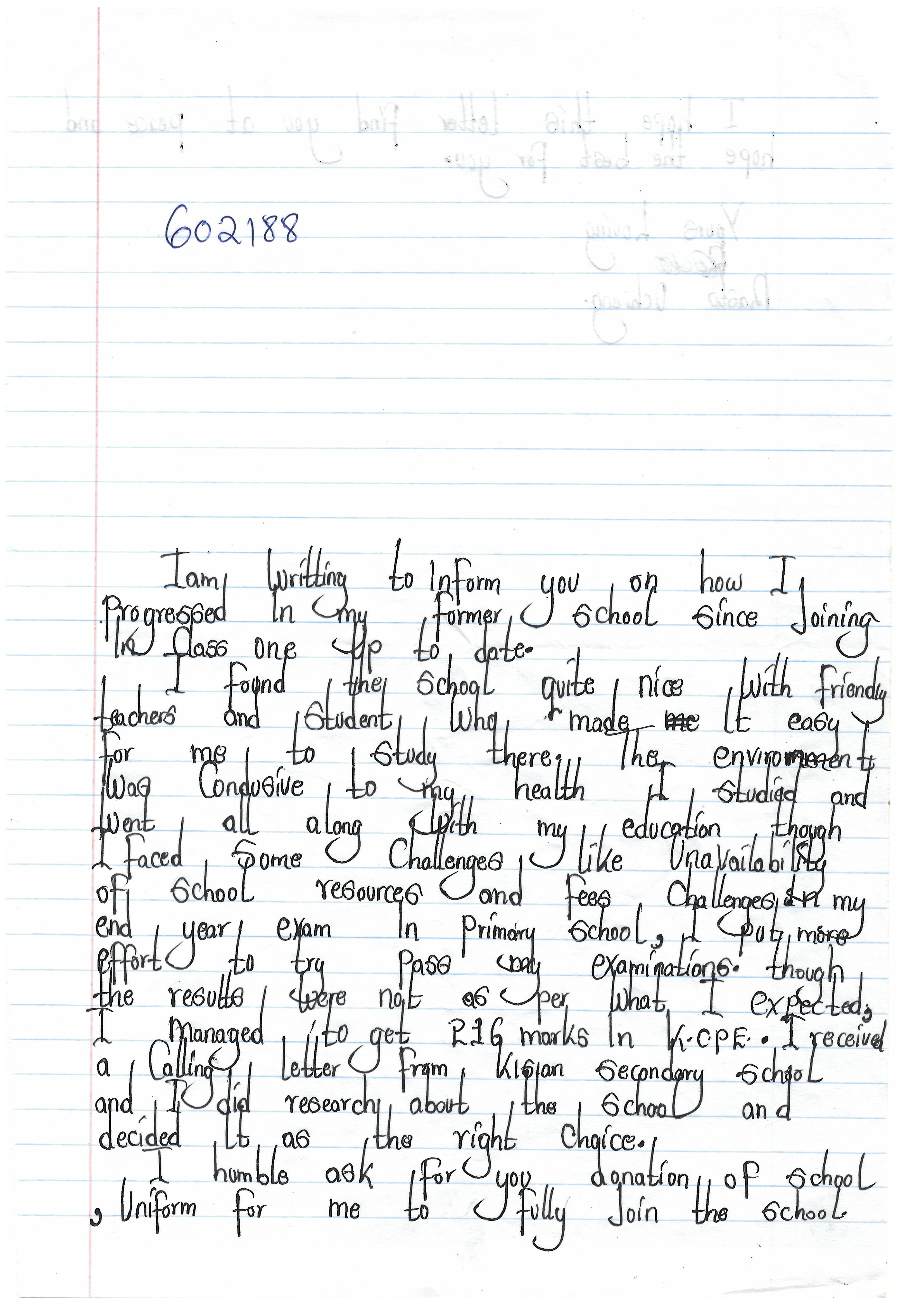 Rasto Ochieng byl adoptován v roce 2014 a dnes navštěvuje 6. třídu ve škole Kisian Primary School.