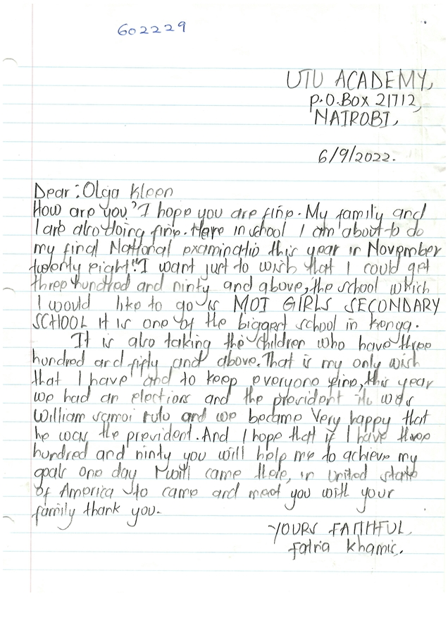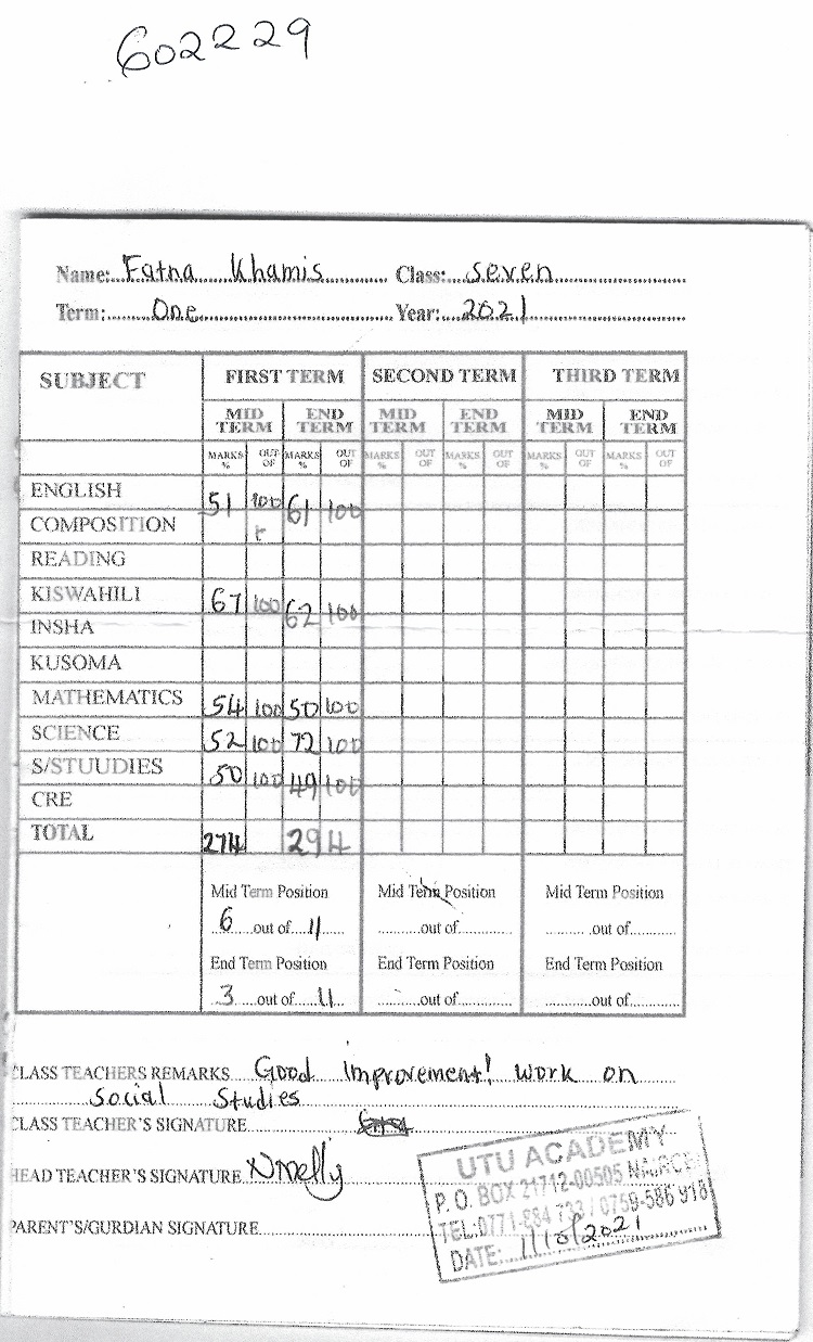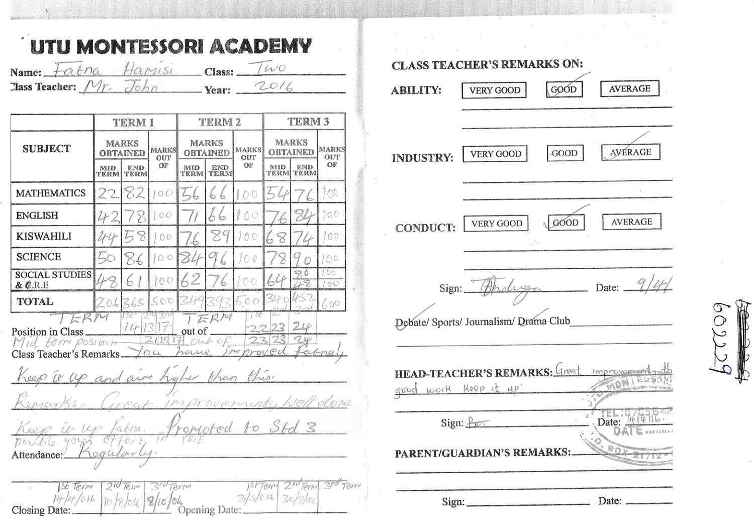 Fatuma Hamisi byla adoptována v roce 2014 a dnes navštěvuje 6. třídu ve škole Utu Montessori School.
