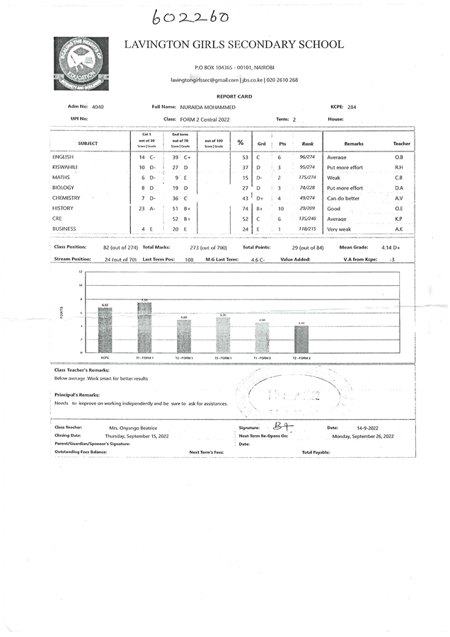 Nuraida Mohammed byla adoptována v roce 2015 a dnes navštěvuje 8. třídu ve škole Trinity Education Centre.