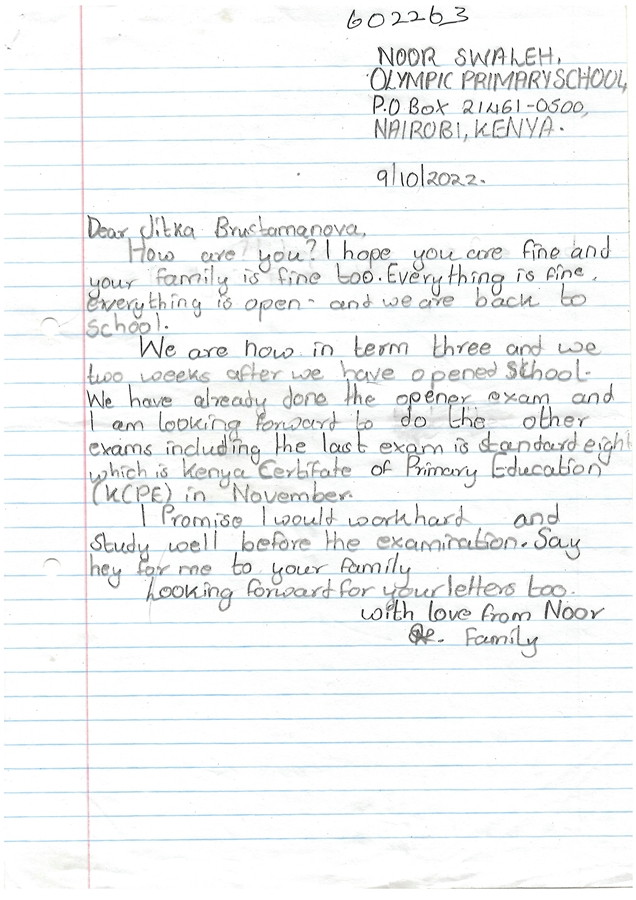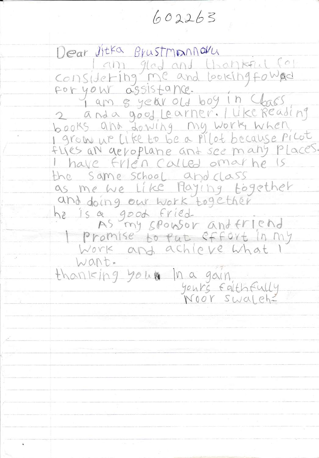 Popis situace: Noor má tři sourozence a celá rodina je závislá na příjmu matky. Rodina bydlí v hliněném domku v jedné místnosti. Aktuálně hledáme někoho, kdo by Noorovi finančně pomohl s jeho vzděláním.