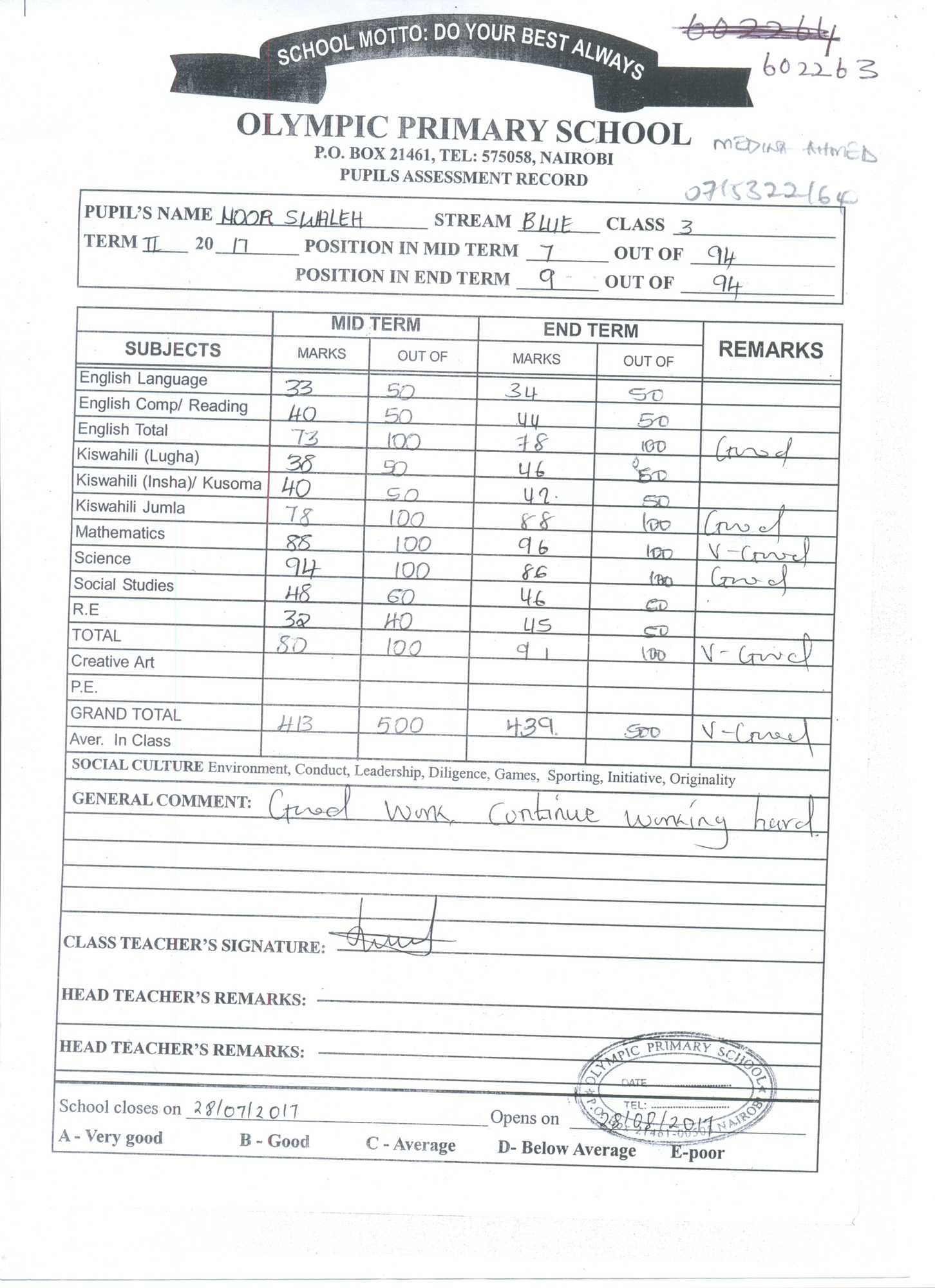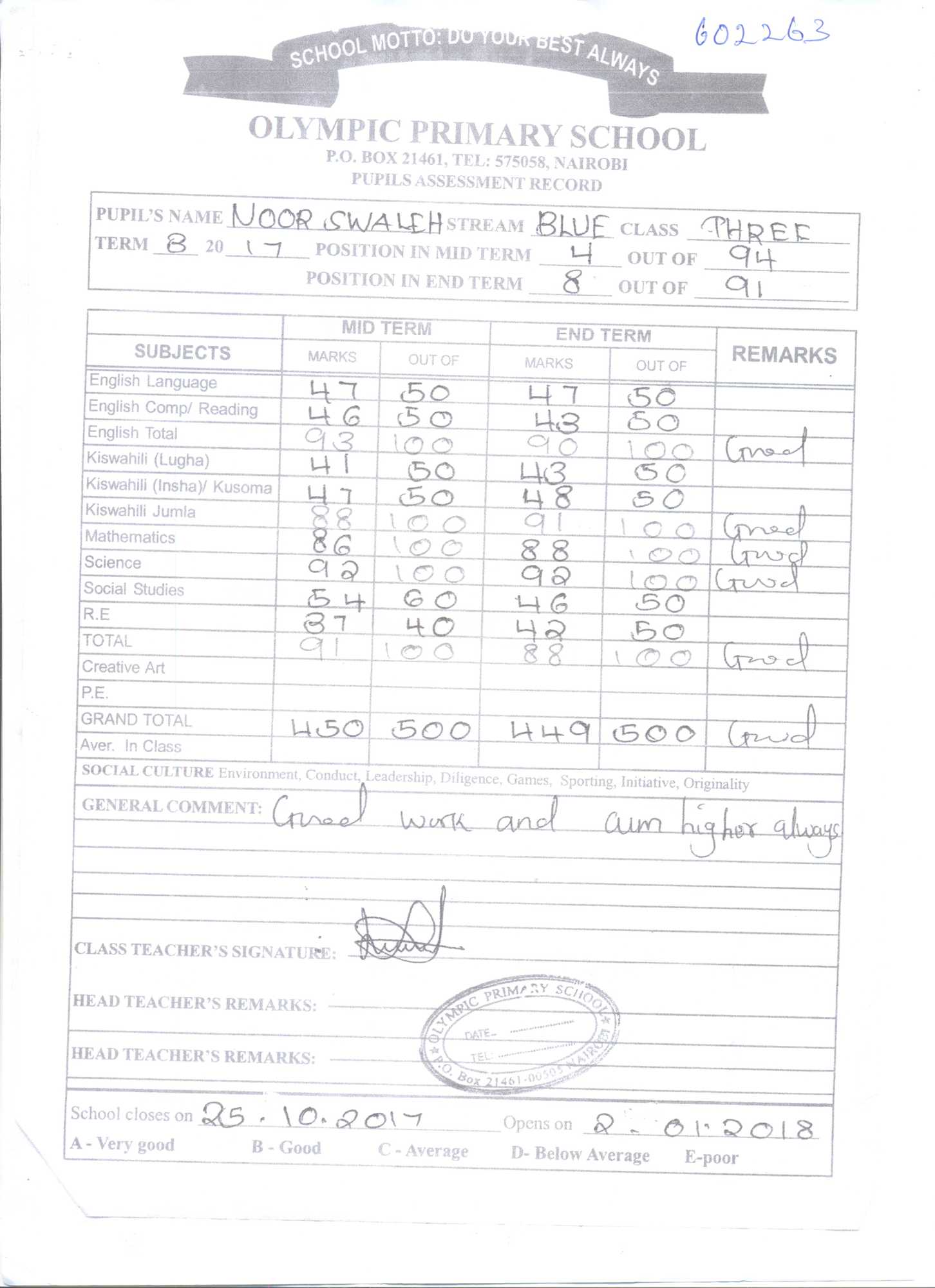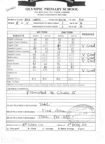 Noor Swaleh byl adoptován v roce 2016 a dnes navštěvuje 6. třídu ve škole Olympic Primary School.