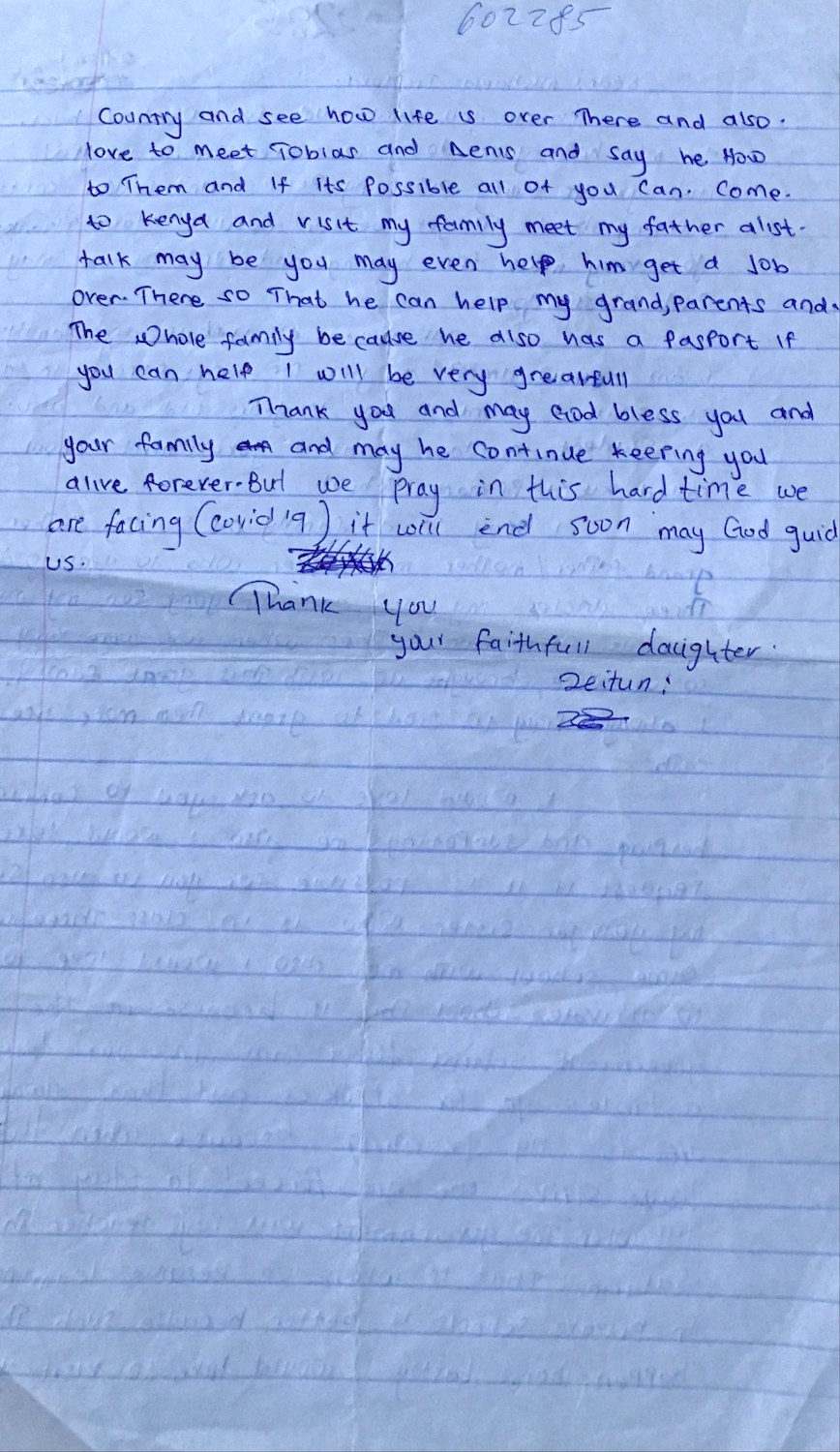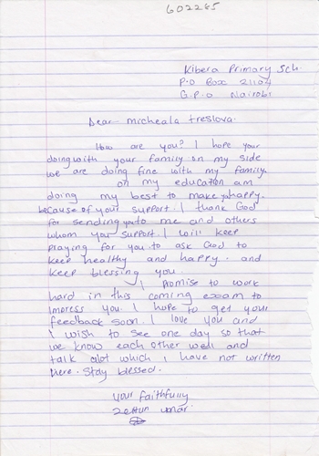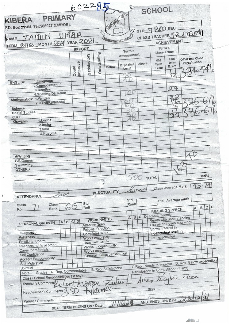 Zeitun Omar byla adoptována v roce 2017 a dnes navštěvuje 6. třídu ve škole Kibera Primary School.