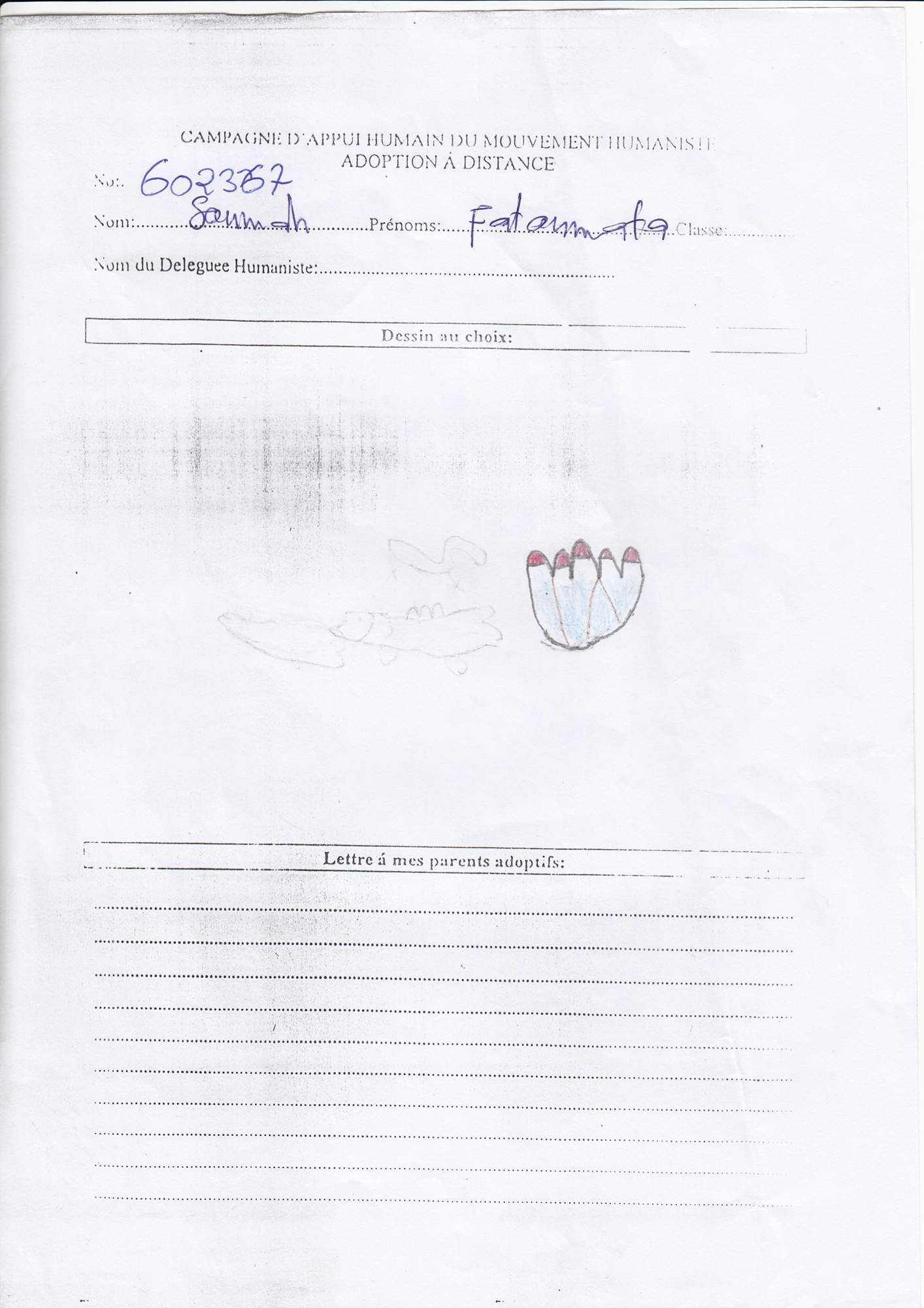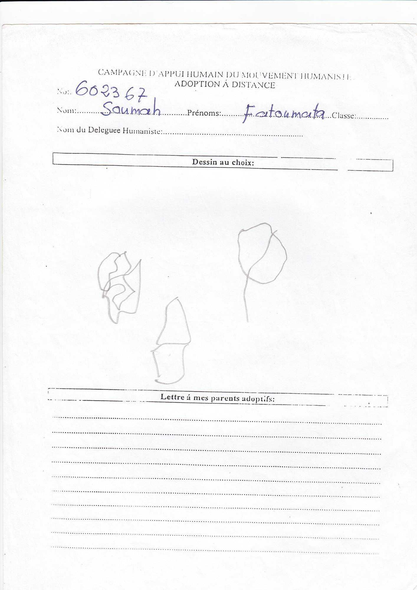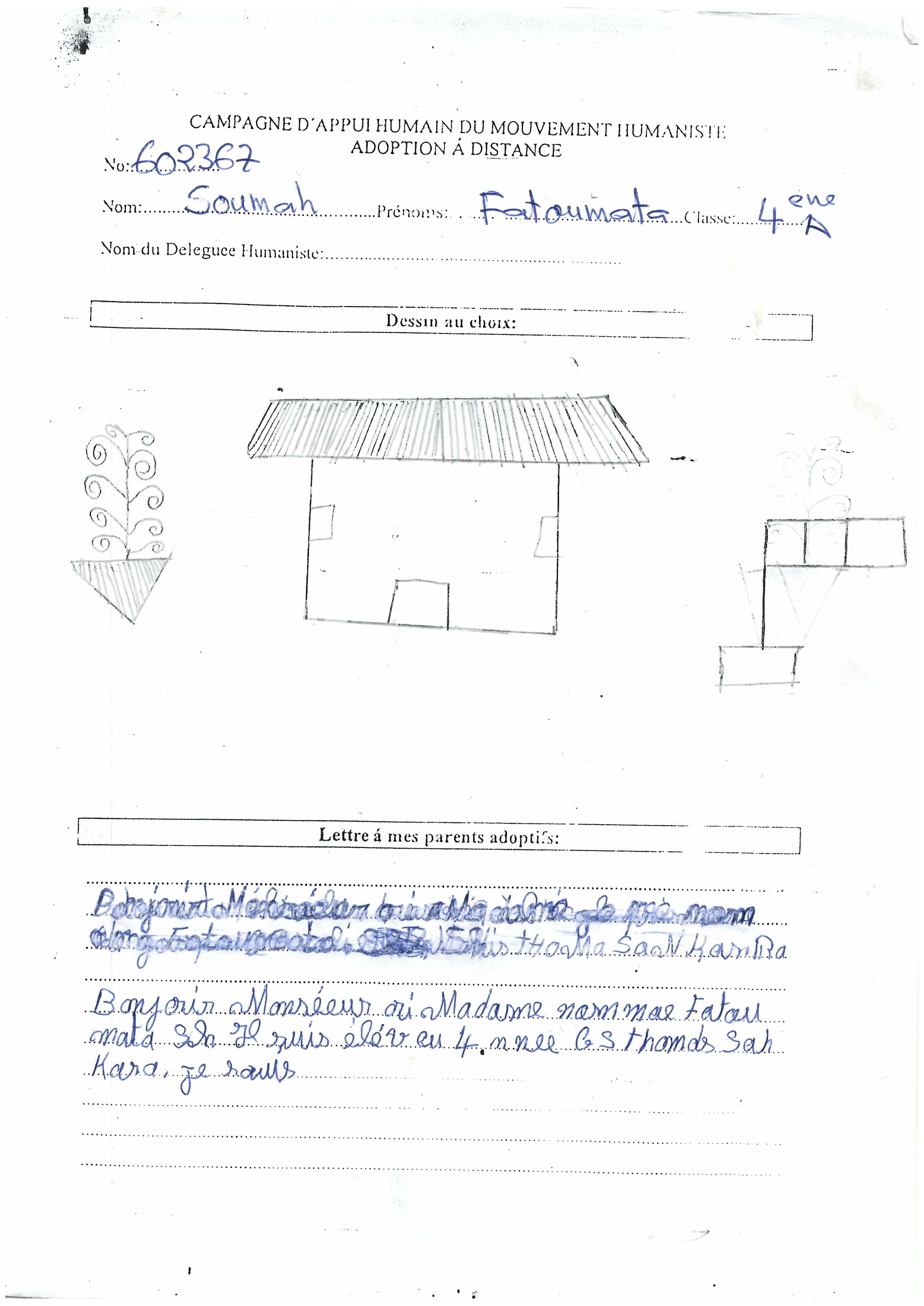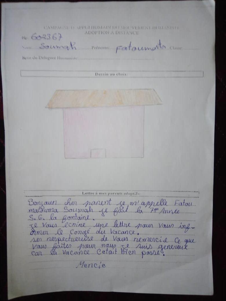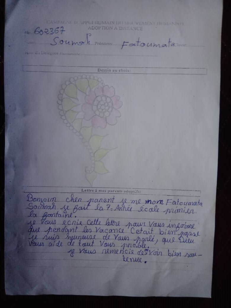 Fatoumata Soumah byla adoptována v roce 2016 a dnes navštěvuje 4. třídu ve škole G.S. Humaniste Thomas Sankara (Matam Lido).