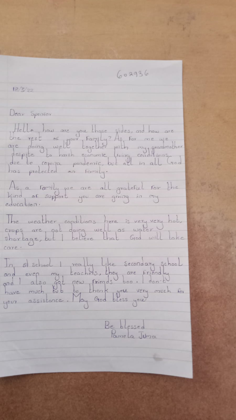 Zubeda má šest sourozenců a společně s rodiči bydlí všichni v jednom pokoji. Živitelem rodiny je otec, který prodává zboží. Matka je nemocná a nemůže dělat náročnější domácí práce. Zubedě hledáme někoho, kdo by jí finančně podpořil a zajistil tak pravidelnou školní docházku.