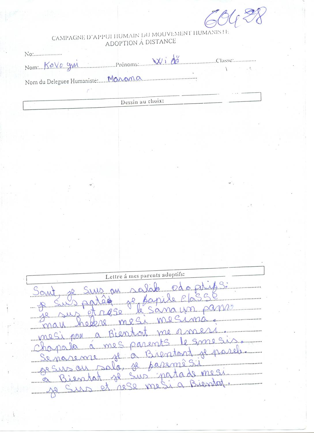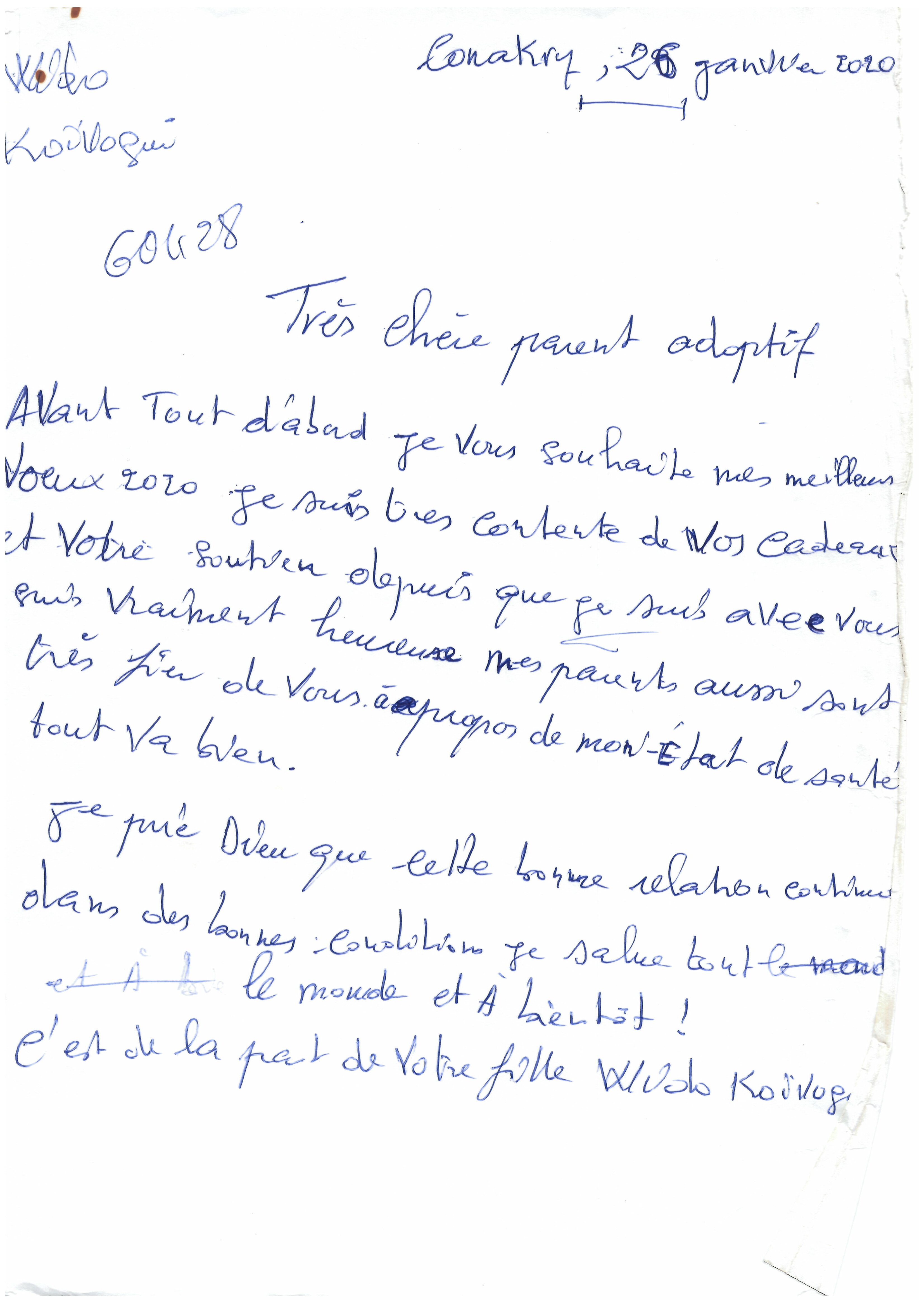Popis situace: Otec Ouido je zemědělec a matka ve snaze zabezpečit své děti prodává zeleninu. Ouido žila ve špatných podmínkách, stravovala se pouze jednou denně a spala s dalšími 4 lidmi v jednom pokoji.(sestra Koulou Koivogui a bratr Koppa Koivogui - 60429). Díky dlouhodobé podpoře adoptivního rodiče mohla chodit do školy a dnes se učí na kadeřnici.