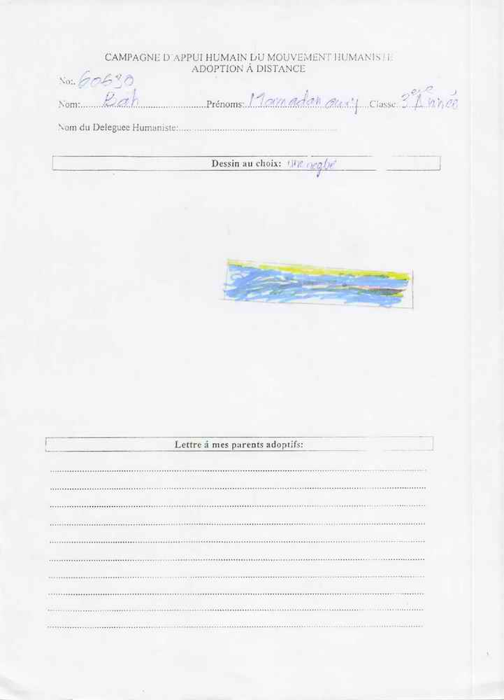 Popis situace: Rodiče dítěte nepracují. Jedí jen jednou či dvakrát za den. Žijí 4 v jednom malém pokoji. Mamadou má 1 bratra a 1 sestru.