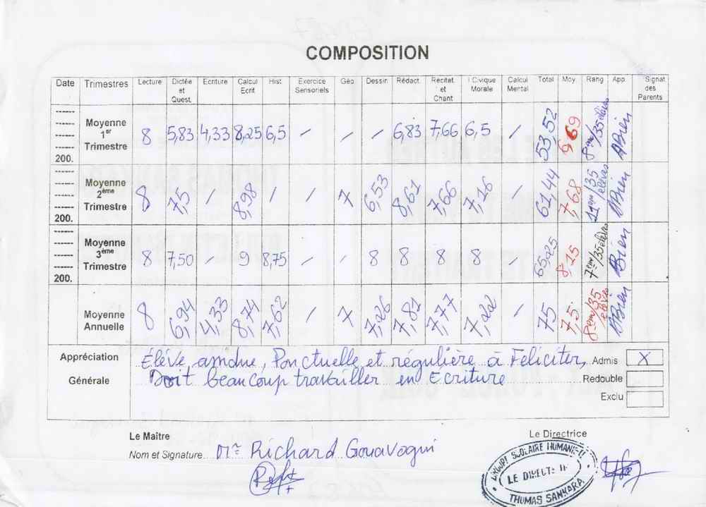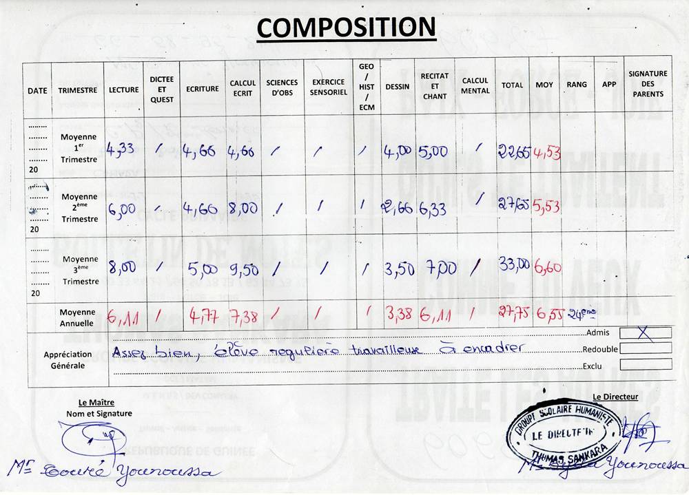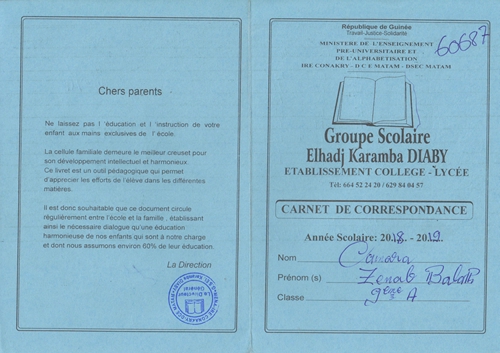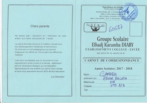 Djenab Balath Camara byla adoptována v roce 2006 a dnes navštěvuje 10. třídu ve škole G.S. Humaniste Thomas Sankara (Matam Lido).