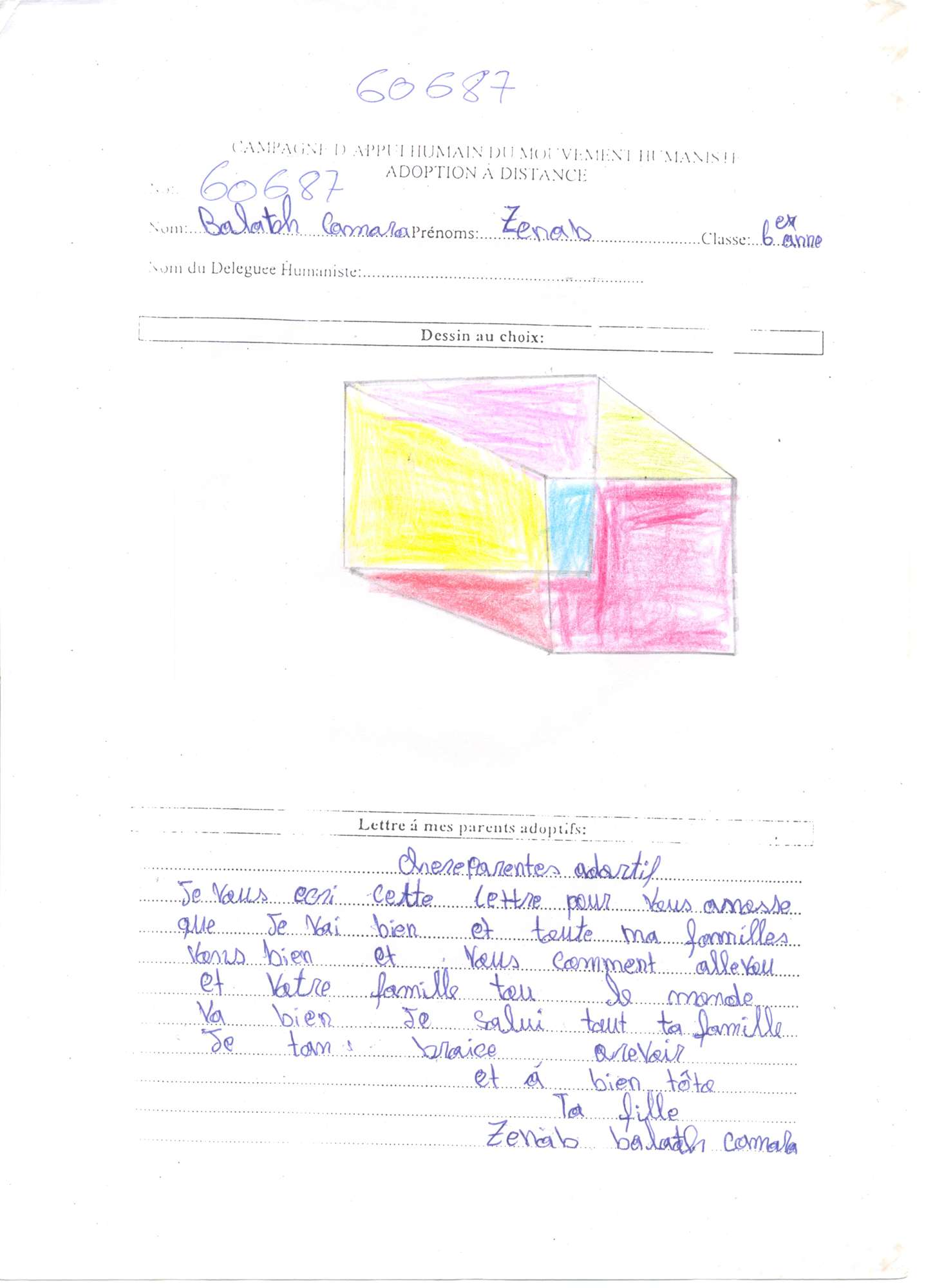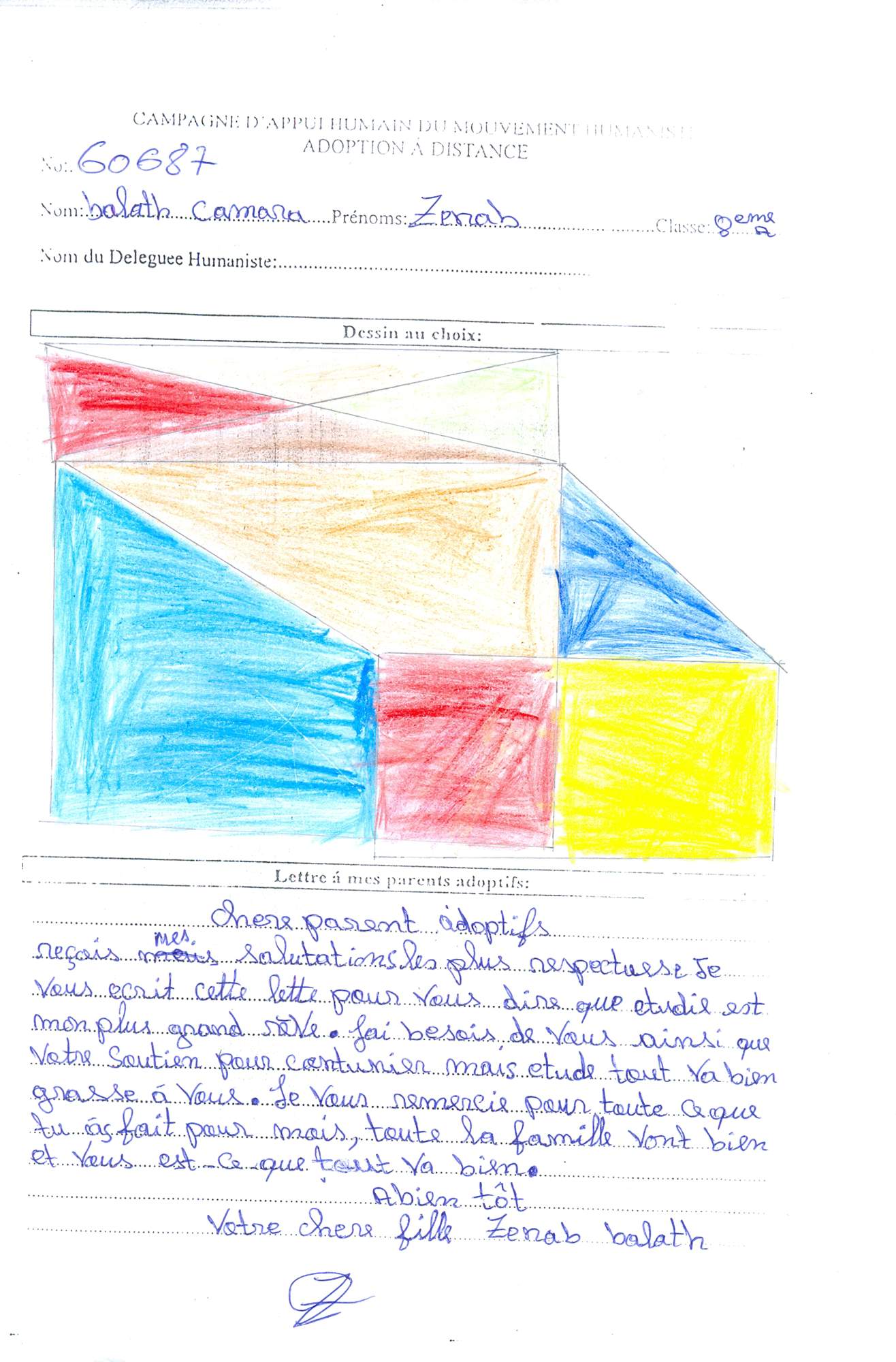 Popis situace: Děti žijí s jejich otcem, který si nemůže dovolit platit školné. Djenab žije s pěti lidmi v jednom pokoji. Má jednoho bratra (60686 - Alfred) a 2 sestry (60685 - Annie).
