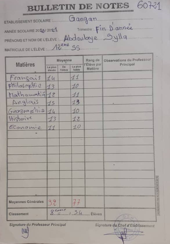 Otec: Maussa Moise Sylla, nar. 1966, voják