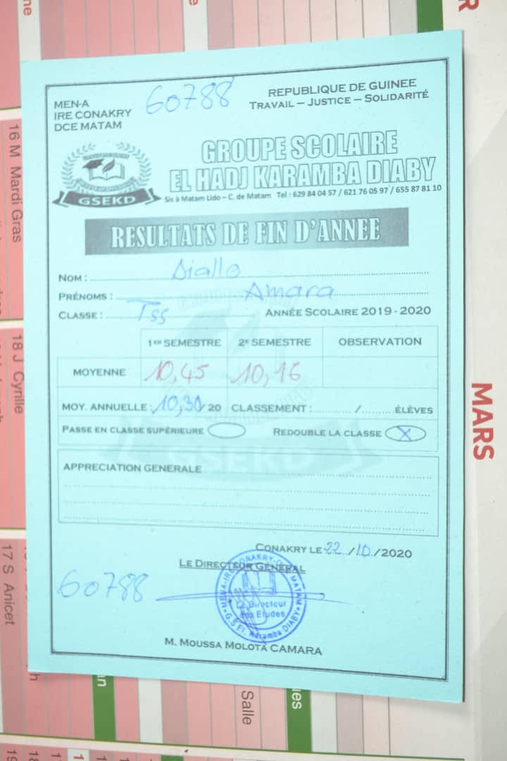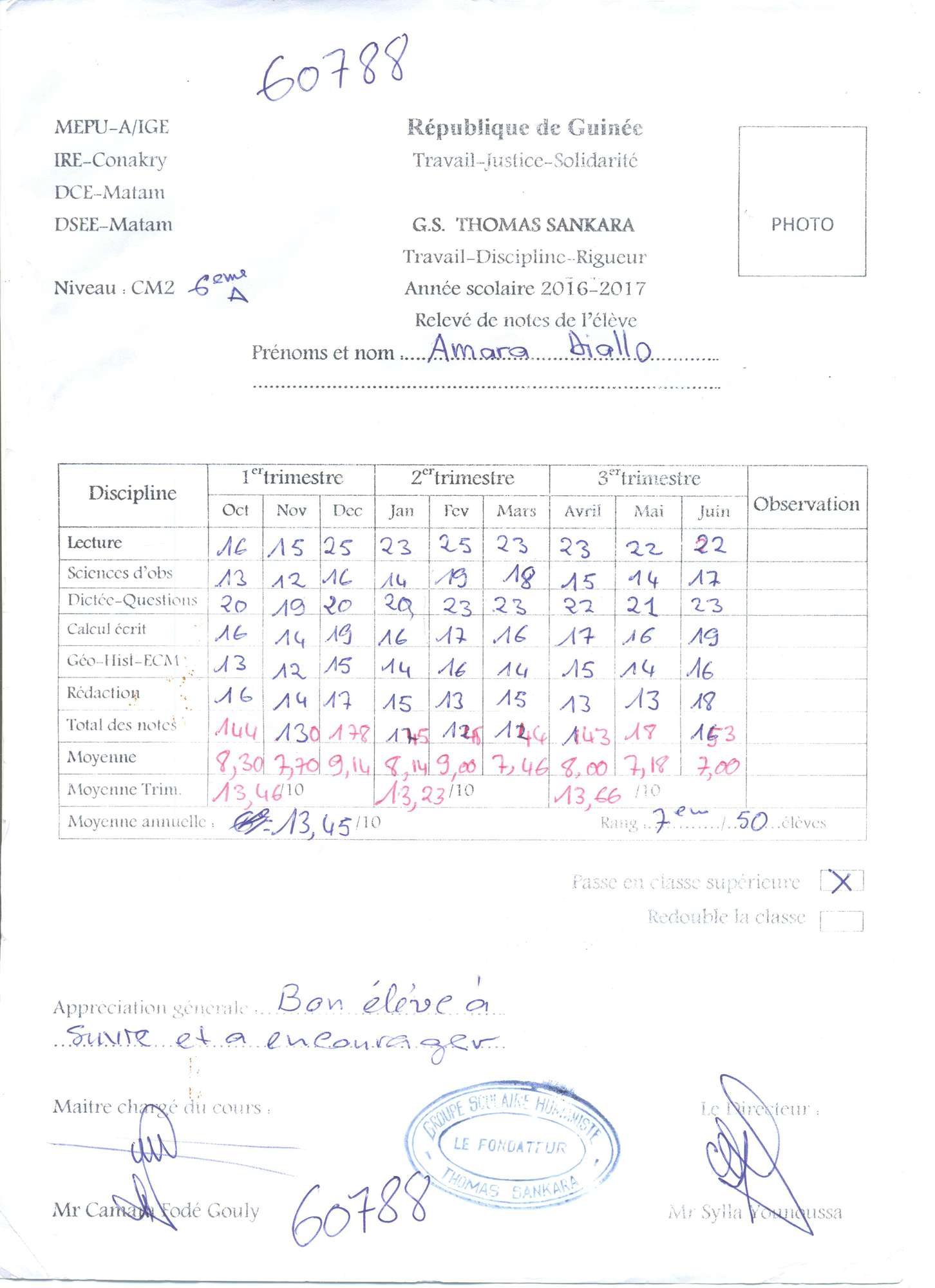 Amara Diallo byl adoptován v roce 2007 a dnes navštěvuje 10. třídu ve škole G.S.P. Elhadj Karamba Diaby (Matam).