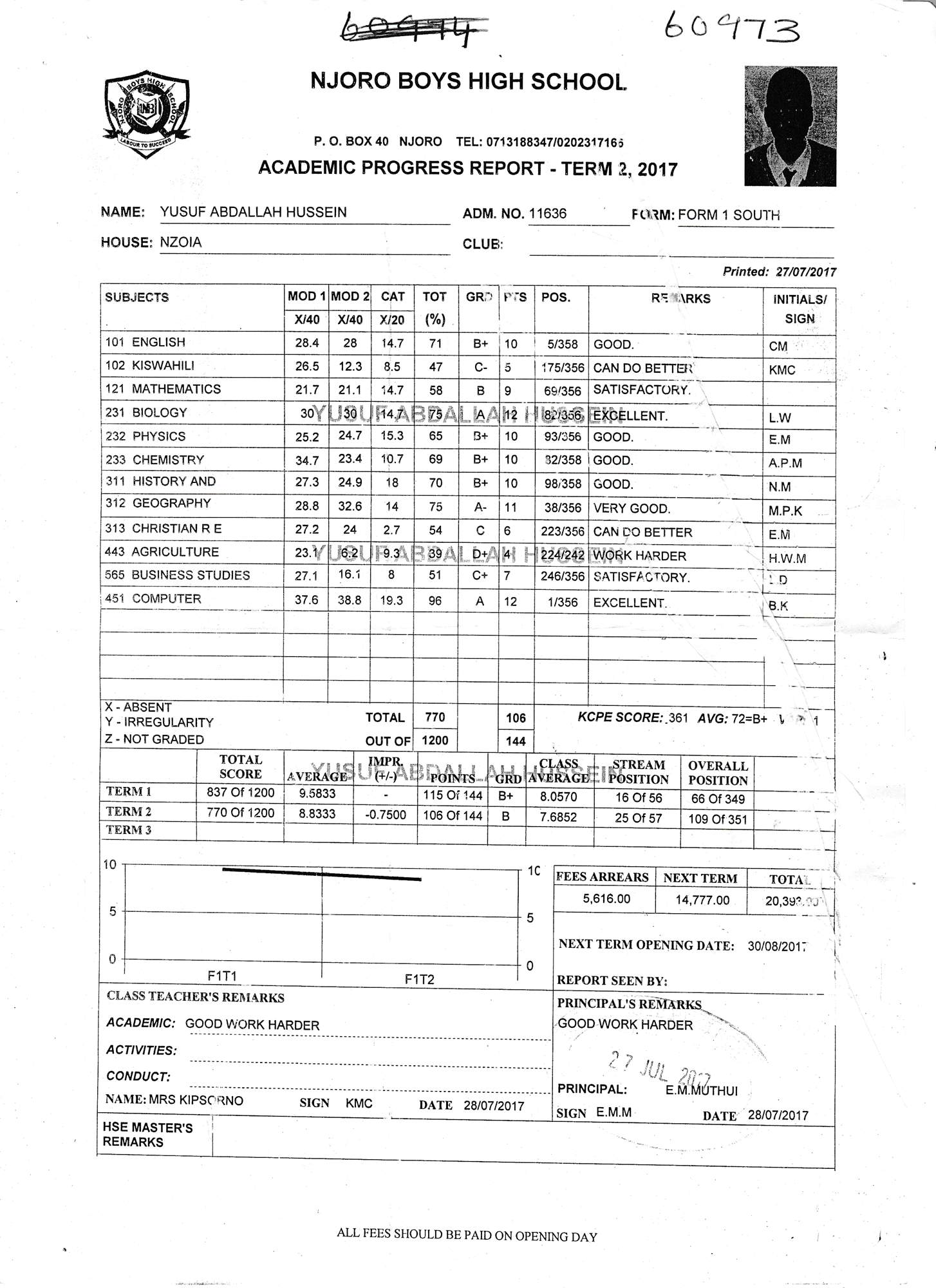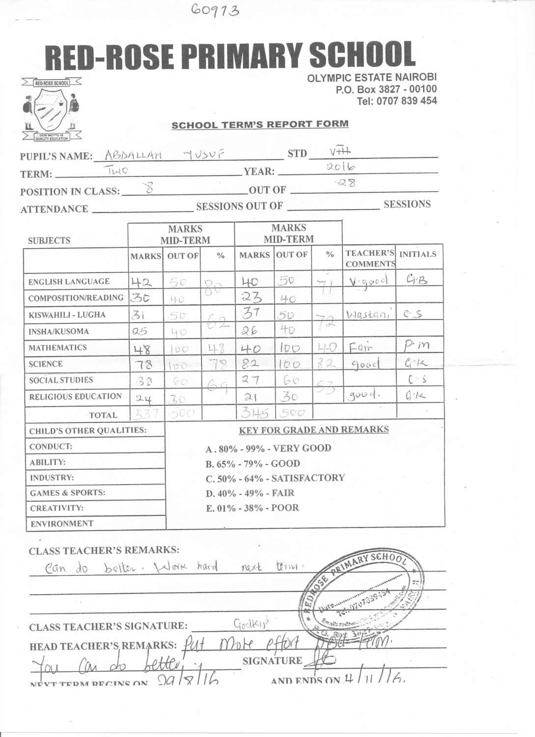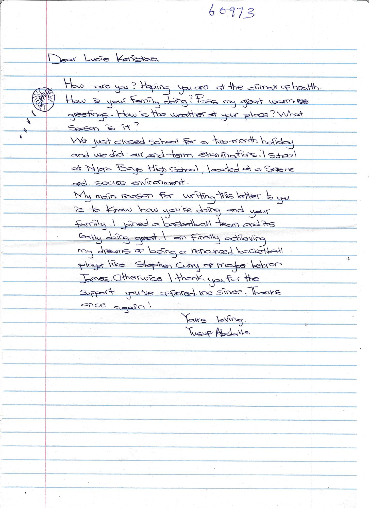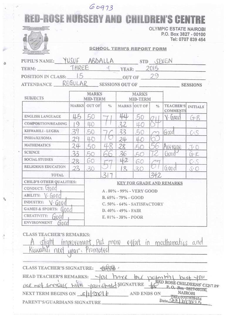Aby mohlo adoptované dítko začít chodit do školy, musí být uhrazeny peníze za školné alespoň měsíc předem. Tím máme dostatek času převést peníze do Keni a vypsat šek na jméno školy a zaručit jeho doručení do školy - to vše před započetím trimestru. Konkrétně to tedy znamená, že vždy do konce března, července a listopadu musí být na našem účtu 2400 Kč na uhrazení školného na nově začínající trimestr. Adoptivní rodič může platit třikrát ročně nebo jednorázově na celý rok a záleží to čistě na jeho rozhodnutí a možnostech.