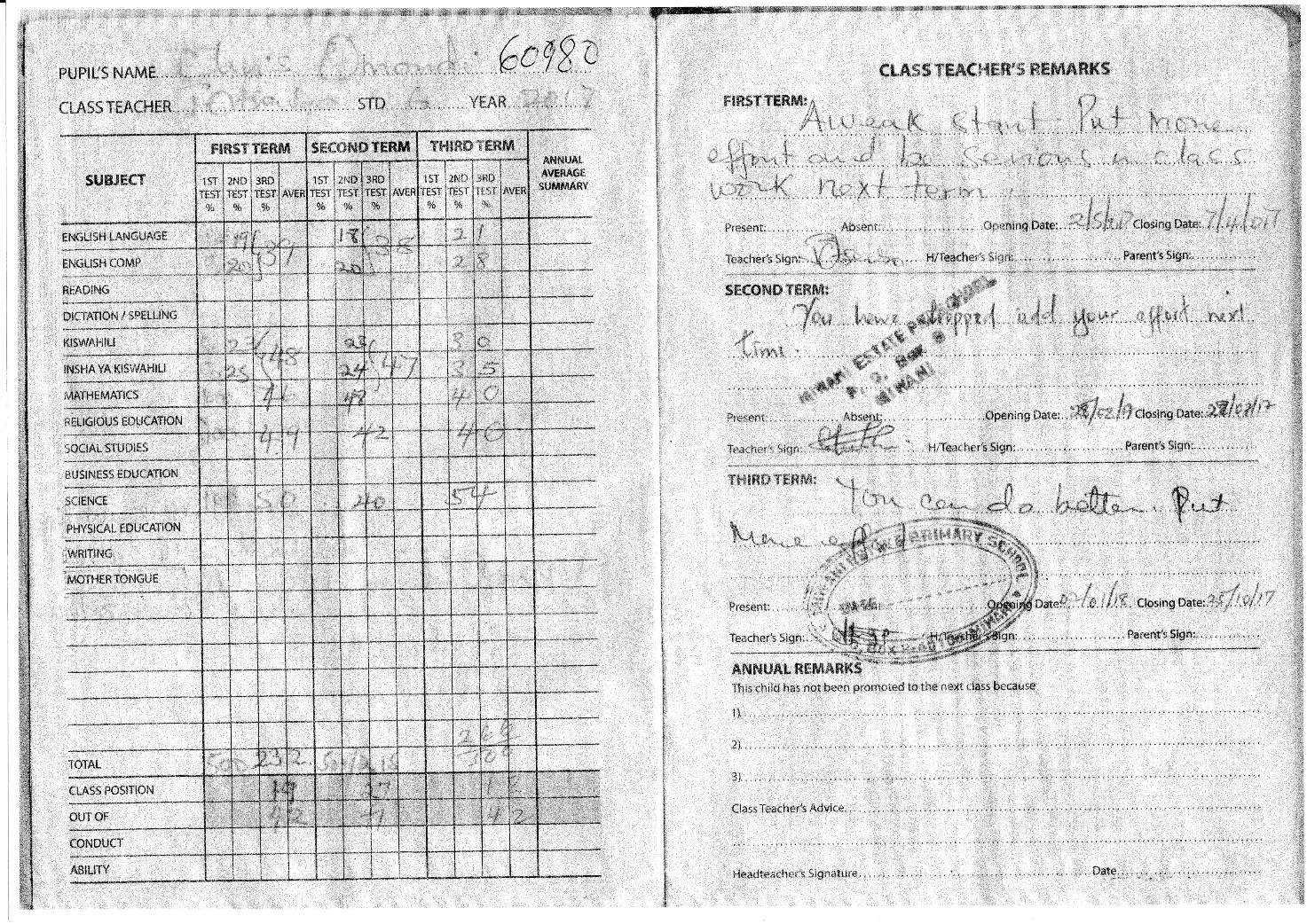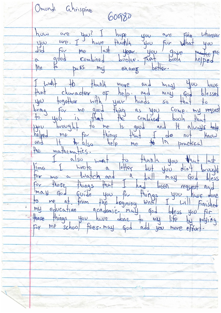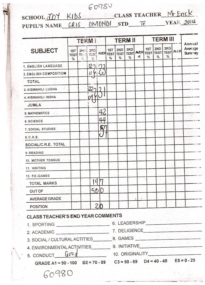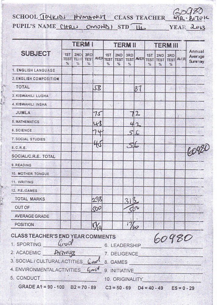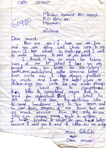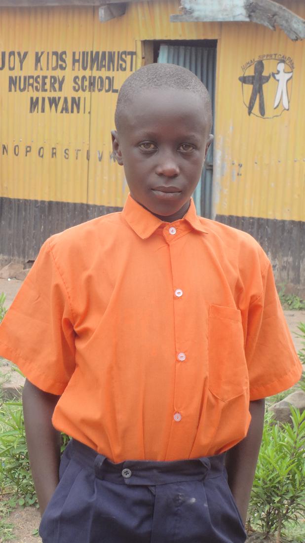 Chlapec bydlí v Kenienu v dvoupokojovém domě spolu s rodiči a devíti sourozenci. Polygamní otec nemá stálou práci a rodina si proto nemůže dovolit chlapce posílat do školy.